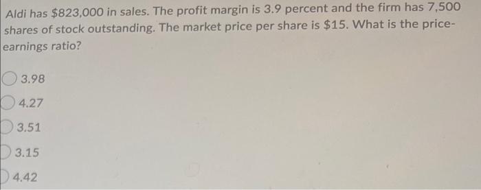 Solved Aldi Has 823 000 In Sales The Profit Margin Is 3 9 Chegg Com